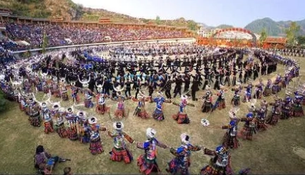 2、百狮会:周邻四乡苗胞会舞着近百匹或数十匹狮子,云集在传统的村寨或集镇,敲锣打鼓,放地铳、打火枪。