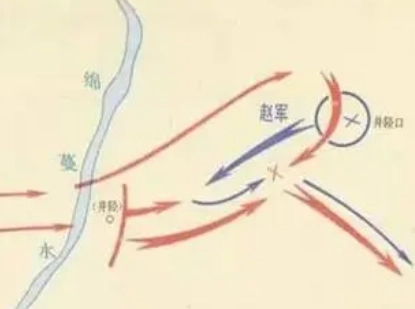 韩信告诫2000骑兵说:“我与赵军交战退却时,赵军一定会倾巢而出追赶我军。你们就迅速拿下赵军大营,拔掉赵军旗帜,换上我军的红旗。”然后韩信又让手下通知立即开饭,说“今天打败赵军一起聚餐。”众将对韩信的命令不解,只得回答说好。