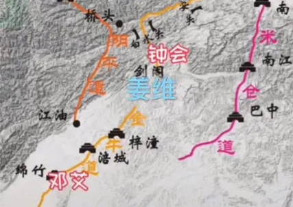 魏军具体进军路线是:西路邓艾主攻沓中屯田的姜维,中路诸葛绪负责切断姜维后路,东路钟会军则主攻汉中诸城。姜维在沓中与邓艾交战后,击败诸葛绪,直奔东路抵挡魏军主力。而钟会大军在占领汉中大部分据点后,前进到剑门关外时,被回援的蜀军阻拦,僵持不下。邓艾则采用以迂为直的谋略,在魏蜀两军主力对峙于剑阁之时,自率精锐部队绕道阴平(今甘肃文县西北),越过700余里荒无人烟的地区,凿山开路,奇袭江油(今四川江油北)。又在蜀汉腹地绵竹大破诸葛瞻、攻占涪城(今四川绵阳),进逼成都。后主刘禅因邓艾兵临城下,向魏军投降。