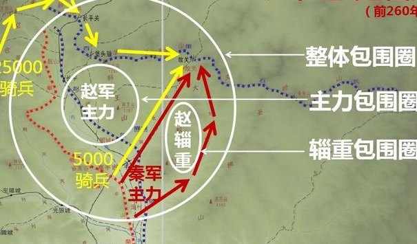 白起的作战特点是以歼灭敌方有生力量为主要目的,战必求歼,并且很善于野战。最终白起用计引诱赵军追击,进而分割包围,将投降的数十万赵军几乎全部坑杀,导致赵国元气大伤,再也无力单独和秦国进行全方位的对抗。