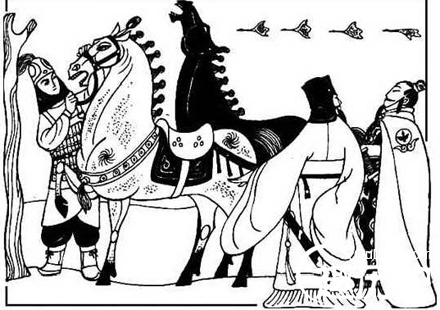 往后越来越黑,真是天昏地暗,什么也瞧不见。他们就在这没边没沿黑咕隆咚的迷谷里冻了一夜。好容易盼到天亮,可是又有什么用呐?眼前还是黄澄澄的一片,道儿在哪儿呐?这块鬼地方连一滴滴水都没有。就因为没有水,不打算喝的也渴了;想喝的就更渴了。你有多大的力气也没法跟这冷清清的荒地斗哇?大伙儿正干瞪眼没辙的时候,管仲猛然想出一个主意来了。一只狗、一只鸽子,还有蜜蜂,不管离家多远,向来不会迷路的。他就向齐桓公说:“马也许能认得路。不如挑几匹无终国的老马,让它们在头里走,咱们在后头跟着,也许能走出这块地方。”齐桓公说:“试试瞧吧。”他们就挑了几匹老马,让它们领路。这几匹老马居然领着大队人马出了迷谷,回到原来的路上。大家伙儿这才透了一口气。