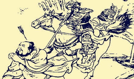 刀砍缺不堪用,韦即弃刀,双手提着两个军人迎敌,击死者八九人。群贼不敢近,只远远以箭射之,箭如骤雨。韦犹死拒寨门。争奈寨后贼军已入,韦背上又中一枪,乃大叫数声,血流满地而死。死了半晌,还无一人敢从前门而入者。