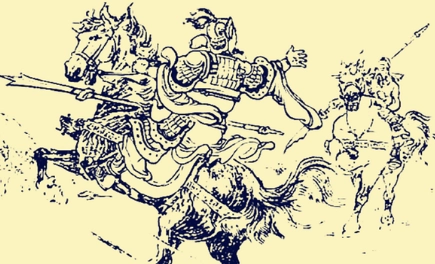 《三国演义》玄德知袁术将至,乃引关、张、朱灵、路昭五万军出,正迎着先锋纪灵至。张飞更不打话,直取纪灵。斗无十合,张飞大喝一声,刺纪灵于马下,败军奔走。