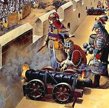 当时朝鲜的领议政(相当于中国的丞相)柳成龙评价日本火枪:“其致远之力,命中之巧,倍于(朝鲜)弓矢……来如风雷,其不能当必矣”。1593年2月8日,明朝大军围攻日军占领的平壤城,日军在城墙上做了很多射击孔,发挥自己火枪的威力,明军第一次攻城伤亡很大。但很快,明军重炮部队来了,史书记载明军用将军炮(120 门)与虎蹲炮(20门)等火炮猛轰平壤城。
