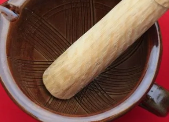 除了上面说的几种加工工具外,古人还有一类工具名为“擂钵”,也叫刻槽盆。基本构造就是在内壁上刻有各种不同凹槽的容器。擂钵种类繁多,起源也很早。人们将粮食放在擂钵内,并用杵杆反复的捣和磨,最后达到去皮或磨粉的最终目的。而盆内凹槽不仅能增加摩擦力,还能提高研磨的效率,还能在淘洗和澄清的时候有利于物质的过滤和沉淀。正是因为这些特点和优势,直到现在我国西南和西北的一些地区,擂钵几乎是家家必备的生活器具。