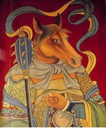 牛头一说最早见于佛家,其牛头人形,手持钢叉,力大无穷。经佛教传人中国,衍生出马面,牛头马面之说在民间广为流传,道教吸收后,并演变为阎罗王及判官的手下。