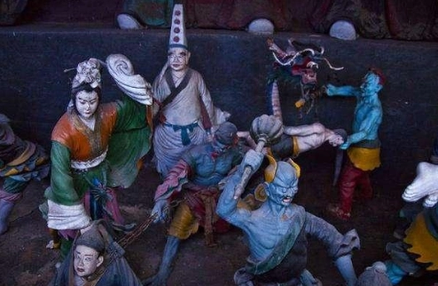 这位鬼王冥帅可不是名字之中的威武霸气,鬼王的雕像上身赤裸,红发獠牙,手持镇魂铃,像极了一个夜叉的打扮。常年和无常、牛头马面混在一起,所以并不想名字一样至高无上,只是因为名字之中带有王字,所以地位比几位略高。在蒲松龄的记载中,鬼王是一位贪得无厌的存在,规定下属拜见他的时候需要割一块大腿肉,不管是有罪无罪,但是财宝送的多的话,就可以免除割肉,可见其习性如何。