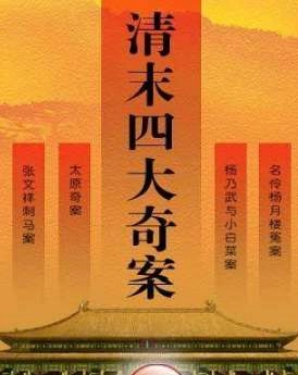 “清末四大奇案”是指在慈禧掌权的清朝末年,即同治、光绪时期在中国发生的比较奇特和复杂的四个案件,一般认为四大奇案为张汶祥刺马案、杨乃武与小白菜案、名伶杨月楼冤案、太原奇案。这四个案件,案情都比较复杂,在查案和断案的过程有曲折起伏,有些案件还有统治高层的介入,至今仍为世人所争论。