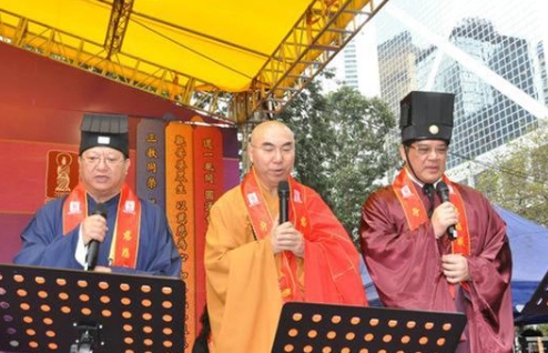 儒教、佛教、道教,简称“儒释道”,是中国三大传统宗教。儒教的创始人是春秋晚期的孔子,以“仁”为最高信仰,是中华民族特有的传统宗教。道教的创始人是春秋晚期的老子,以“道”为最高信仰,主张“无为而治”的道家核心思想,也是中国本土宗教。