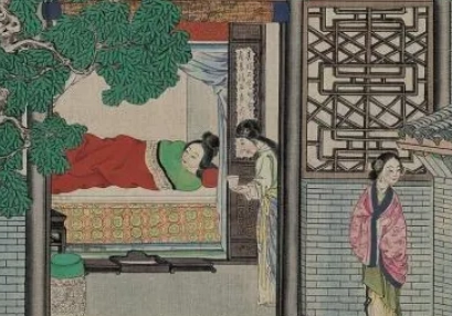 (第30回)王夫人在里间凉榻上睡着,金钏儿坐在旁边捶腿,也乜斜着眼乱恍。
