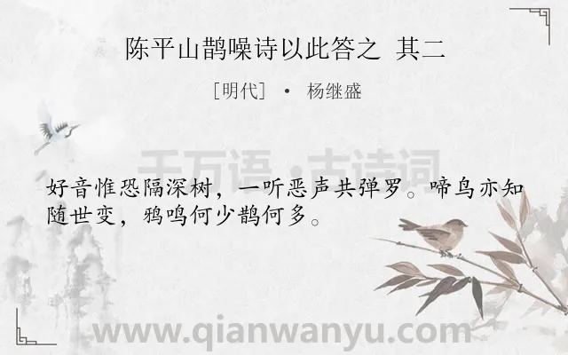 陈平山鹊噪诗以此答之 其二原文