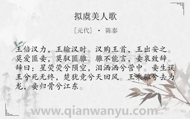 《拟虞美人歌》作者是元代的陈泰.诗词全文约共89字.